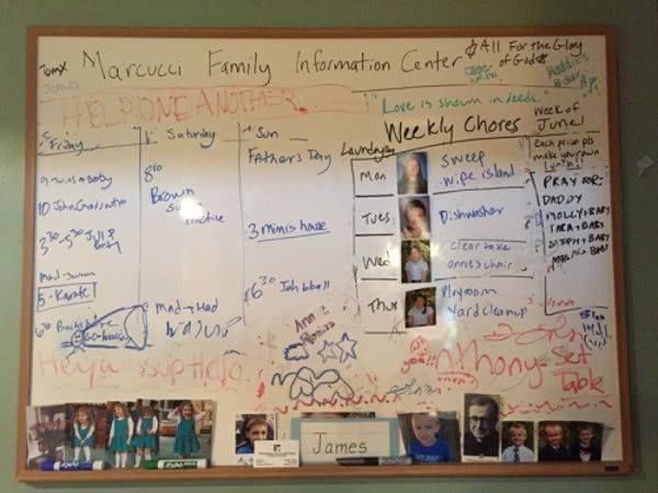 Tugenden beizubringen, gute Haltungen zu vermitteln, geht am besten durch gutes Beispiel. Daher liegt es auch in der Verantwortung der Eltern, dass er und sie selbst am Wachstum der eigenen menschlichen Tugenden arbeitet. So versuchen wir den Kindern zu zeigen, dass „Liebe nicht in schönen Worten, sondern in Taten besteht“, wie der heilige Josefmaria sagte. Dieses und andere aufbauende Mottos haben wir auf unserer weißen Aufgabentafel („Chore chart“) aufgeschrieben, die für alle Familienmitglieder da ist.