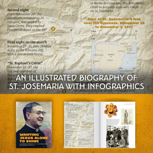 Among the new contributions are graphics such as maps of various Spanish cities where Saint Josemaria lived: Logroño, Saragossa, Burgos and Madrid. Other new items help readers to understand more clearly events such as the passage through the Pyrenees in 1937 during the Spanish Civil War; and trips in Europe between 1948 and 1958 to encourage the apostolic expansion of Opus Dei.