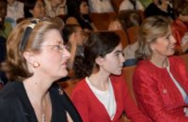 On a stage furnished to resemble a living room, stressing the family nature Opus Dei, Bishop Echevarria responded to selected audience questions on how to balance the demands of work and family with devotion to Christ. They also asked about how to make God personally present and how to find time for devotions when everything in the world draws us away.