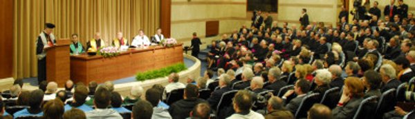 El Prelado ha invitado a todos los profesionales creyentes del mundo de la información "a conjugar el don gratuito de la fe con el esfuerzo cotidiano en el estudio racional de todos los saberes implicados en la comunicación". A continuación se ha entregado el primer doctorado Honoris Causa.