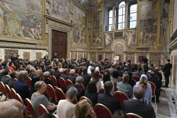 Thank you for your work, thank you for this department, which is so numerous... I asked the Prefect: “But... does everyone work?” – “Yes”, he said – to avoid that famous anecdote... [One day Pope John XXIII was asked, “How many people work in the Vatican?” and he answered: “About half of them”]. They all work, and they work with this attitude that expresses the desire for God: to communicate with oneself, in what theologians call the perichoresis: one communicates within oneself, and one communicates to us. This is the beginning of communication: it is not an office job, like advertising, for example. To communicate is precisely to take from the Being of God and to have the same attitude; not to be able to remain alone: the need to communicate what I have and I think that it is the true, the just, the good and the beautiful. Communicating. And you are specialists in communication, you are technicians in communication. We must not forget this. You communicate with the soul and the body; you communicate with the mind, the heart, the hands; you communicate with everything. The true communicator gives everything, he gives all of himself – as we say in my country, “he puts all the meat on the grill”, he does not spare any for himself. And it is true that the greatest communication is love: in love there is the fullness of communication: love for God and among us.