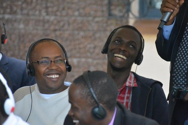 The Father answering a question on education, in a get-together with men in Strathmore University Auditorium