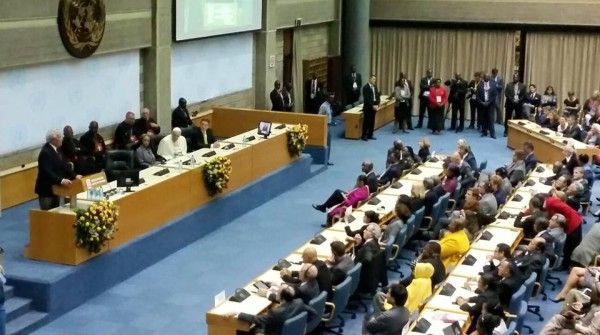 On his way to the hall of the United Nations Office, Pope Francis was asked to plant a tree in the park of the United Nations Centre. The Holy Father was happy to carry out this simple symbolic act, which is so meaningful in many cultures.