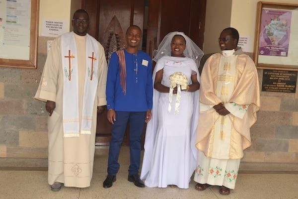 It wasn't easy making that choice. We have many friends. The majority of our family members were upcountry and couldn’t access Nairobi. In the end, we had two priests presiding over the ceremony. My niece, whom I live with, represented my family while his younger sister represented his family. To add to the guest list, we had the chairlady from our small Christian community, our best couple, the photographer, two choir members and two friends from my Centre, Roshani.