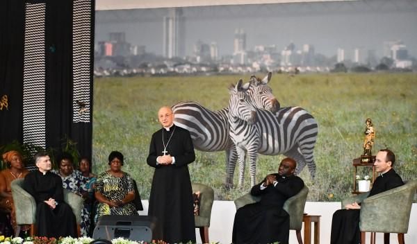 Mid-morning found the Father in the Strathmore University, Madaraka Campus where he was able to greet some families coming to see him from Tanzania. He then met with a large group of members of Opus Dei in the Auditorium of the University.