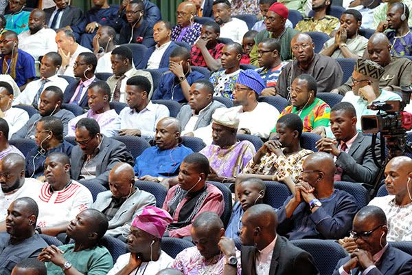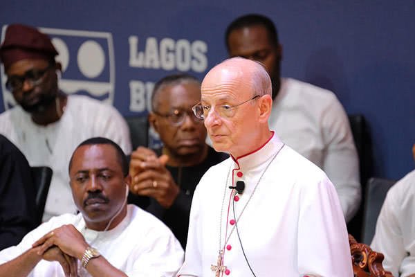 Shortly after the meeting at Whitesands, the Prelate went over to the Lagos Business School where he had another get-together at the school auditorium with some professional men of different ages. As he entered the auditorium, the more than 450 people present welcomed him with a popular local song.