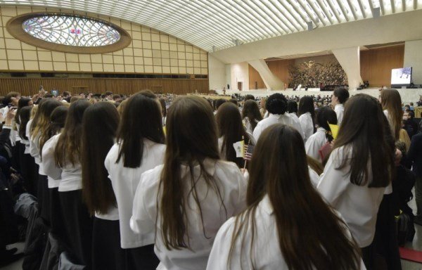 Today’s audience takes place in two places. First I met with the faithful of Benevento, who were in Saint Peter’s, and now with you. And this is due to the delicacy of the Prefecture of the Papal Household, who did not want you to get cold: let us thank them, they did this. Thank you.