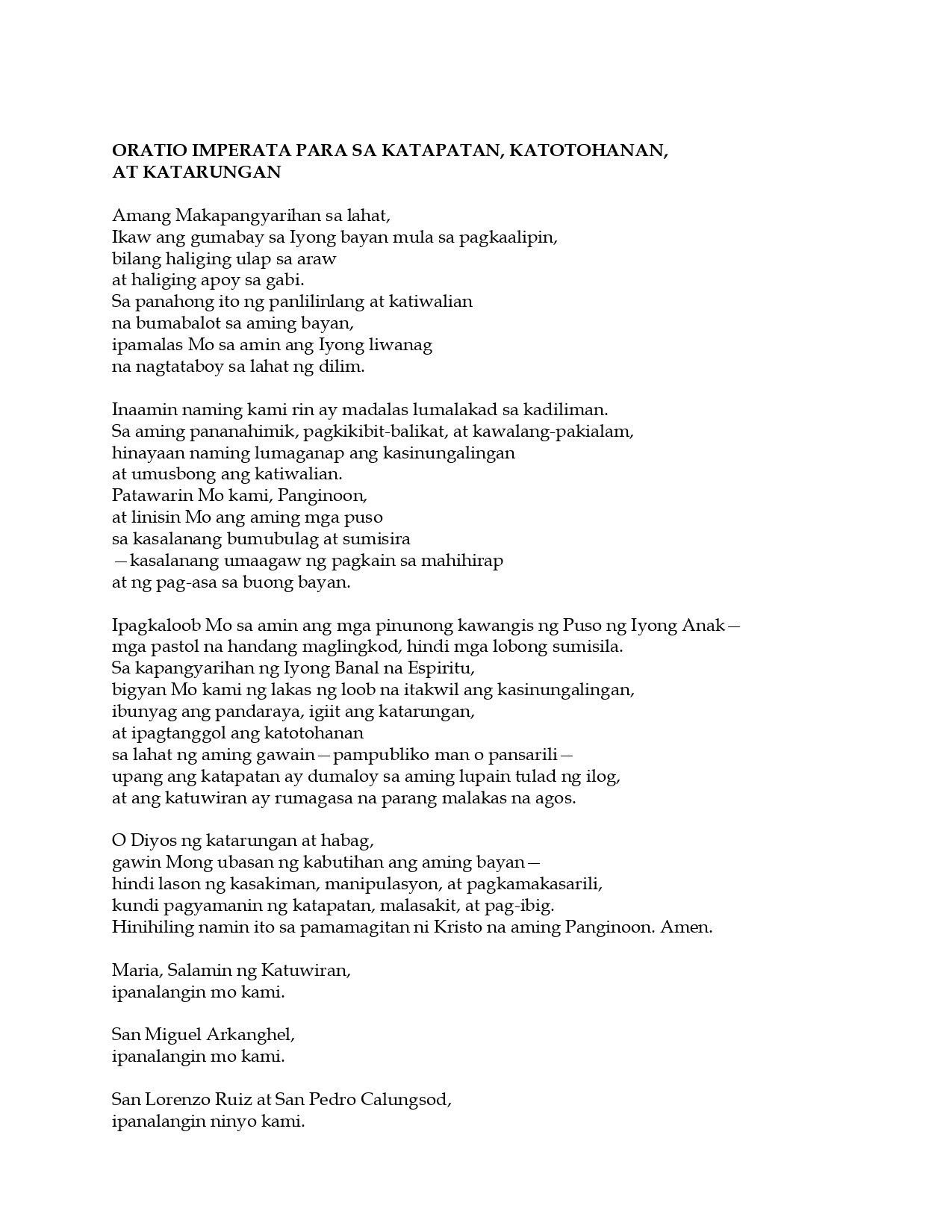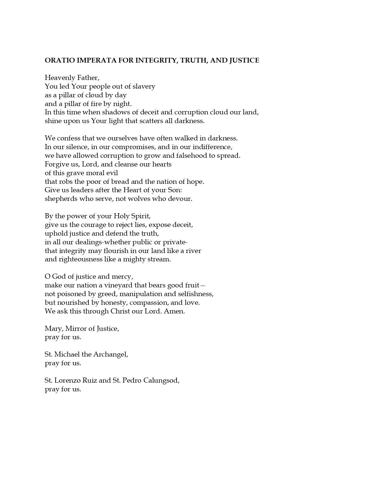 Archbishop Jose Cardinal Advincula of Manila, the country’s oldest diocese, asked all shrines, parishes, oratories, and chapels in the diocese to pray the Oratio Imperata for Integrity, Truth, and Justice.