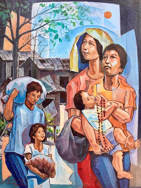 It may seem that he is portraying negativity in the painting below, but actually the artist is trying to inspire people by depicting the resilience and toughness of the Filipino in the midst of difficulties brought about by natural calamities.