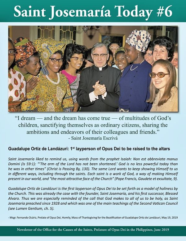 Guadalupe Ortiz de Landázuri is the first layperson of Opus Dei to be beatified. The ceremonies were held on May 18, 2019 in Madrid.