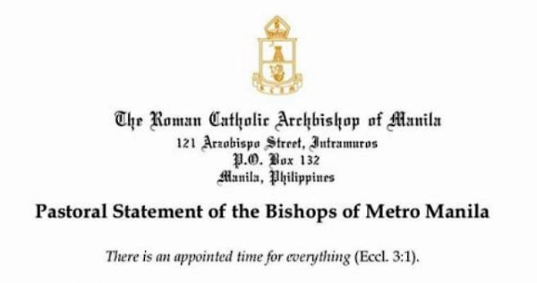 “There is an appointed time for everything,” (Eccl. 3:1) the Holy Bible says. Let us heed the signs of our time and respond to them appropriately. The government has declared a community quarantine in Metro Manila from March 15 to April 14 to stem the spread of COVID 19. We bishops of this region met to discuss common pastoral actions in the light of this development. We have been guided by fidelity to the faith, service to the people, and the common good of the community. After much discussion and discernment, we have decided on the following points which we will implement in our ecclesiastical jurisdictions in the Archdiocese of Manila, in the dioceses of Cubao, Novaliches, Pasig, Kalookan, Parañaque, parts of both the diocese of Antipolo and Malolos that belong to Metro Manila, and some parts of the Military Vicariate of the Philippines.