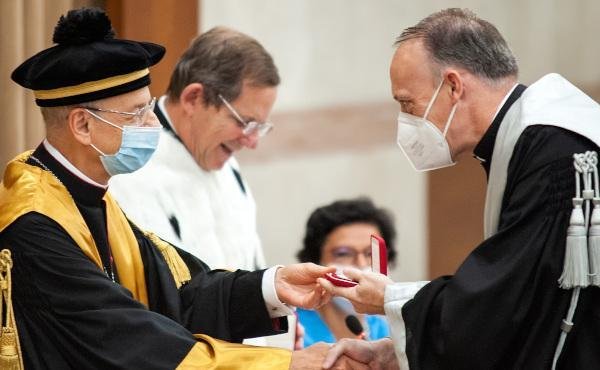 I am happy to be here today with all of you, after a long absence during which the pandemic, still not overcome, kept us from meeting in person. Today I pray in a special way for our dear professor Miguel Angel Tabet, and for every person in our academic community who has passed away in these recent months.