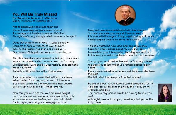 Recurring themes in his catechetical trips and in his pastoral ministry were the love of Jesus Christ on the cross, fraternal love, service to those around us, the importance of grace and the Word of God, family life, and union with the Pope. In his last pastoral letter, in fact, besides expressing thanks for the audience he had with Pope Francis on November 7, he asked—as always—that the members and friends of Opus Dei accompany the Pope with prayers for his person and intentions.