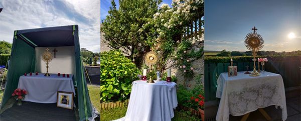 I’m currently covering the parish of Tenby, a beautiful seaside town in west Wales which, if it weren’t for the lockdown, would be thronged with tourists at this time of year – so it would have been a wonderful missionary moment. The Lord had another idea though, which came to me during my prayer: taking advantage of an easing in the Welsh travel restrictions, I offered families the opportunity of a time of adoration and benediction in their gardens instead! I wasn’t sure what the take-up would be like – in the end though, so many families asked for the Lord to visit them that I had to extend the visits into the days following the feast, which would traditionally have fallen within the Corpus Christi Octave. In total 36 different households took part.