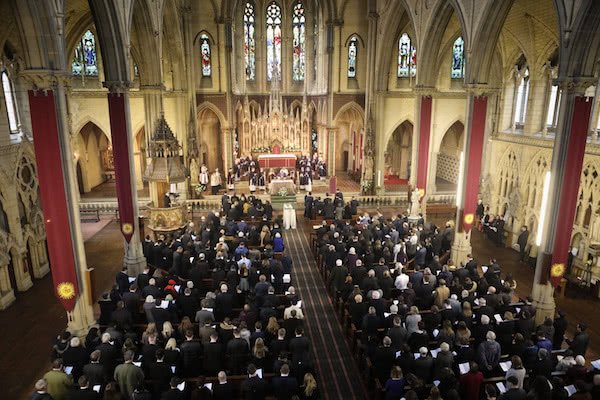 There is no greater tribute nor place to commemorate his life and commend his soul than in this Sacrifice of the Mass, which gathers the whole Church both on earth and in heaven as here, at this Altar, eternity intersects with time and binds us together united in the Mystical Body of Christ.