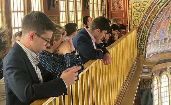 In his last days the Pope made every effort—despite his weak condition—to be with the people, from greeting and blessing those who attended the Palm Sunday Mass, to visiting the imprisoned on Holy Thursday, to meeting with the Vice President of the United States, and at last giving his final blessing at the Urbi et Orbi on Easter Sunday, which we were so privileged to attend. At our get-together with Don Mariano, we were told how difficult it was for the Pope even to physically smile given his exhaustion, and yet one could no less sense an incredible joy in him. Even his words to his physician following the Urbi et Orbi Blessing expressed this same tremendous spirit of service and love: “Thank you for bringing me back to the square.” Truly, his last days on this earth consummated the resounding motif of his pontificate: to walk together with the People of God as the servant of servants.