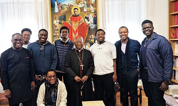 Rome, April 2025. During their recent visit to Rome for the Holy Week and Easter celebrations, some university students from the Pan-Atlantic University, Lagos, which has affiliation with Opus Dei, as the latter protects the Christian identity of the university, visited the Nigerian Cardinal His Eminence Francis Cardinal Arinze, at his private residence in the Vatican. In an audience with his guests that lasted for over an hour, he spoke to them about many issues ranging from the importance of finding and living one’s vocation well, to defending the institution of the family, civic responsibility, the sacredness of the liturgy and the symbolism of sacred images for prayer and worship.