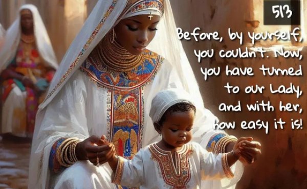 JN. Every artist has their favourite piece. So far, mine is the illustration for point 513 that reads: “Before, by yourself, you couldn't. Now, you have turned to our Lady, and, with her, how easy it is!” That chapter on Our Lady, which I only illustrated some points for the Rosary month of October, gave me a deeper love for African renditions of the Blessed Virgin Mary. I think I unwittingly discovered for myself, and experienced, the evangelizing concept of “inculturation.” This is when Christianity enters into the bloodstream of an already existing culture, and enriches its indigenous words and images to communicate the divine message of salvation. One friend mentioned how they can no longer imagine Our Lady as a European, which is funny because after all, she wasn’t! It’s just that after centuries of widespread European Art depicting Mary as one of their own, (which is completely valid), we have imprinted in our imagination a kind of ‘standard’ idea of how the Blessed Virgin appears. Being a Jewess you could say that she was definitely not “black”. However, philosophy tells us that whenever the transcendent touches the material world, it manifests itself as multiplicity. Thus, just as God’s infinite wisdom manifests itself through an infinite number of earthly creatures, stars and galaxies, Mary’s motherhood and femininity can be depicted in an infinite number of ways and cultures. But that’s me putting on my philosophical hat, and you don’t want to get me started!