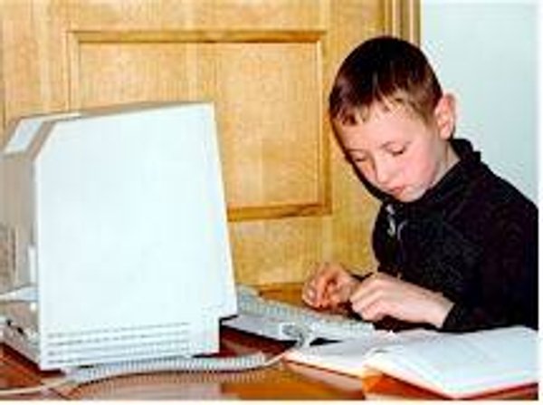 Jakob Mellov durante una clase de computación en Alfa Klubi