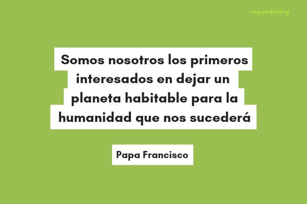 8. "Somos nosotros los primeros interesados en dejar un planeta habitable para la humanidad que nos sucederá. Es un drama para nosotros mismos, porque esto pone en crisis el sentido del propio paso por esta tierra". (Punto 160)