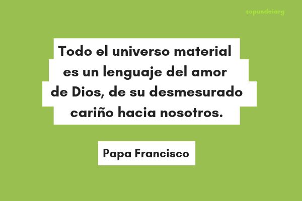 6. "Todo el universo material es un lenguaje del amor de Dios, de su desmesurado cariño hacia nosotros. El suelo, el agua, las montañas, todo es caricia de Dios". (Punto 84)