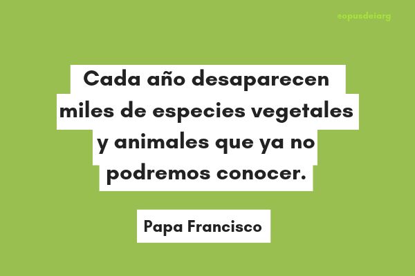 2. “Cada año desaparecen miles de especies vegetales y animales que ya no podremos conocer, que nuestros hijos ya no podrán ver, perdidas para siempre. La inmensa mayoría se extinguen por razones que tienen que ver con alguna acción humana. Por nuestra causa, miles de especies ya no darán gloria a Dios con su existencia ni podrán comunicarnos su propio mensaje. No tenemos derecho”. (Punto 33)