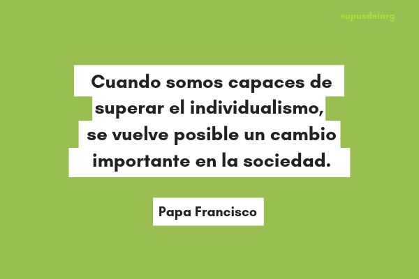 9. “Cuando somos capaces de superar el individualismo, realmente se puede desarrollar un estilo de vida alternativo y se vuelve posible un cambio importante en la sociedad”. (Punto 208)