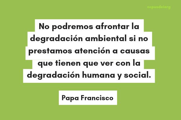 4. “El ambiente humano y el ambiente natural se degradan juntos, y no podremos afrontar adecuadamente la degradación ambiental si no prestamos atención a causas que tienen que ver con la degradación humana y social. De hecho, el deterioro del ambiente y el de la sociedad afectan de un modo especial a los más débiles del planeta”. (Punto 48)