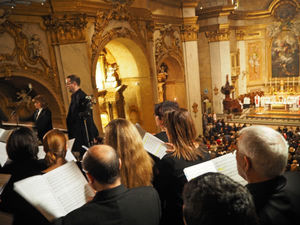 Numerosos fieles y devotos de san Josemaría llenaron por completo el templo y disfrutaron de la interpretación ofrecida por los coros “Ciudad de Guadalajara” y Grupo Vocal Kromática, dirigidos por Mercedes Padilla, que dirigió la Orquesta Sinfónica del Real Conservatorio Superior de Música de Madrid.