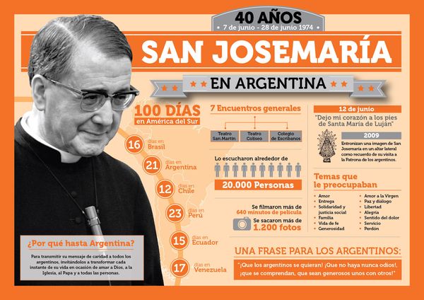 En 1970, San Josemaría había visitado México para rezar ante la Virgen de Guadalupe. En 1974, un año antes de su fallecimiento, se concretó el primer viaje de catequesis al Cono Sur. Fueron 100 días intensos participando de reuniones con personas de todo tipo y condición en Brasil, Argentina, Chile, Perú, Ecuador y Venezuela.