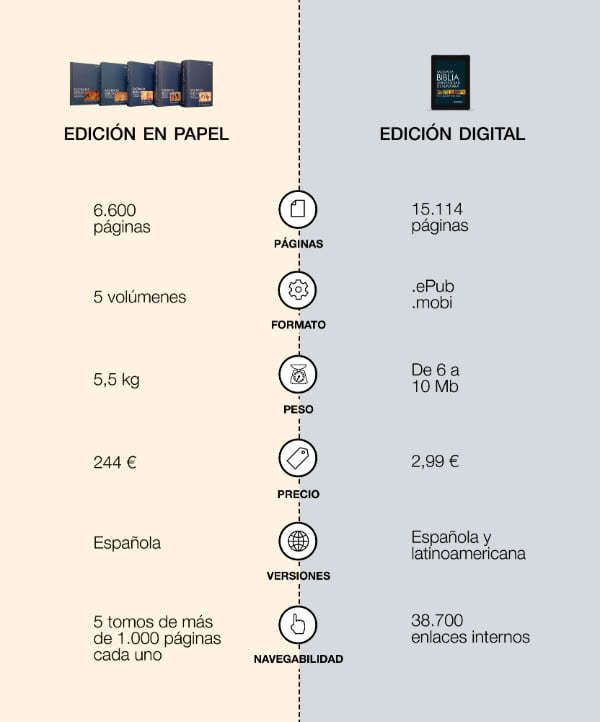 Con más de 38.700 enlaces internos, un peso de sólo 6,6 megabytes y un diseño que permite el fácil manejo de una obra tan extensa, la edición digital de la Biblia de la Universidad de Navarra está ya disponible en preventa en las plataformas iBooks de Apple, Amazon Kindle y Google Play Books. El precio de lanzamiento es de 2,99 euros.