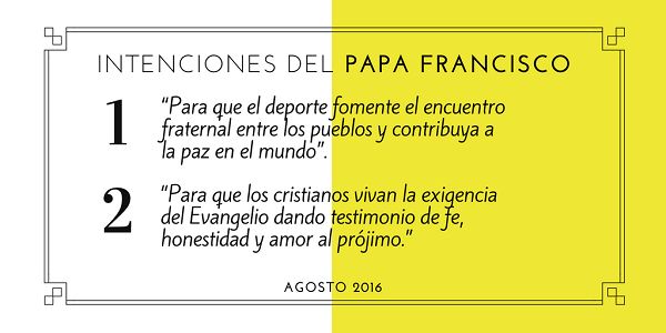 La intención de oración universal del Papa Francisco para el mes de agosto es “que el deporte fomente el encuentro fraternal entre los pueblos y contribuya a la paz en el mundo”.