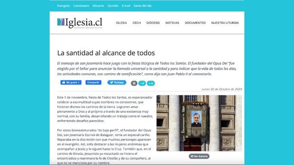 Con ocasión de la fiesta de Todos los Santos, el portal de la Conferencia episcopal de Chile, www.iglesia.cl ha publicado este artículo del vicario del Opus Dei en nuestro país, padre Álvaro Palacios, sobre el mensaje de san Josemaría y la llamada universal a la santidad.