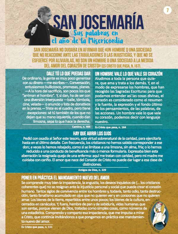 En el contexto del Jubileo de la Misericordia, durante la misa habrán decenas de sacerdotes confesando para ayudar a quienes deseen obtener una indulgencia jubilar cruzando la Puerta Santa. También la Prelatura destacará en su Hoja Informativa Anual “San Josemaría Hoy”, distintas iniciativas que sacan adelante fieles y amigos en la línea de agradecer al Papa –con palabras del Prelado, Javier Echevarría, “con hechos y con oración, la convocatoria de este Jubileo especial, verdadero tiempo de gracia para la Iglesia y para el mundo. A todos nos colma de júbilo acoger la llamada del Padre común a tratar con más cercanía a Nuestro Señor, en la piedad y en la celebración de los sacramentos —sobre todo la Penitencia y la Eucaristía—, y también en las manifestaciones concretas de caridad fraterna con el prójimo”.
