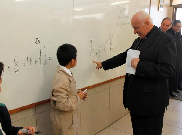 “Lo que aquí está surgiendo con tanta belleza es un signo de que Dios nos quiere” dijo el cardenal al recorrer esta mañana las aulas, patios e instalaciones del nuevo colegio PuenteMaipo, de la fundación Nocedal, establecimiento que abrió sus puertas a la comunidad al año pasado y que hoy enseña gratuitamente a 210 niños del sector de Bajos de Mena.