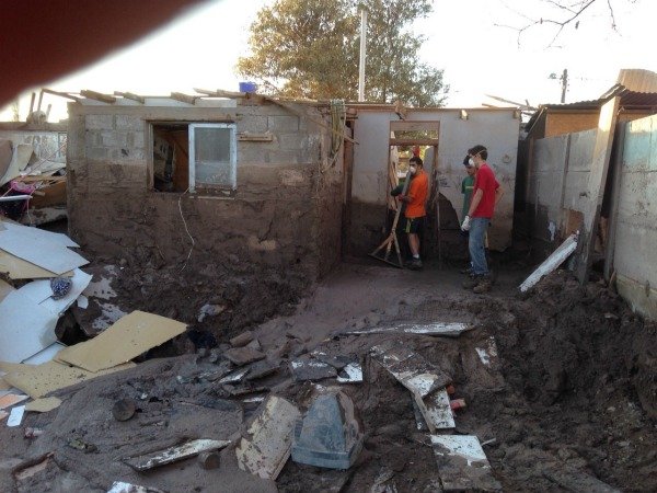 La ayuda no se hizo esperar y en el Centro Cultural Los Montes -en coordinación con el Colegio Tabancura- nos movilizamos con un grupo 17 personas entre alumnos del Centro de Alumnos del Colegio Tabancura y otros de 4° medio que frecuentan los medios de formación. Nuestro destino era Copiapó, en la zona de Paipote, y nuestra misión era sacar el barro que había dentro de las casas.