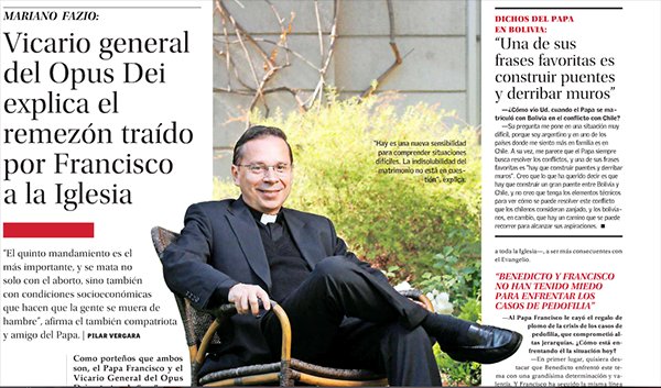 Casi como disculpándose, Mariano Fazio -56 años, doctor en Filosofía, ordenado sacerdote por Juan Pablo II, y con un tremendo currículum antes de llegar hace poco más de un año a convertirse en uno de los dos más directos colaboradores del Prelado Javier Echeverría- explica con humor cómo se dio la situación. "Cuando lo eligieron Papa, le escribí una carta: 'Santo Padre, estoy muy contento, rezo por usted, ya no lo voy a tratar de vos'. Y me contestó de puño y letra: 'Me causó gracia eso de que dejaste de ser confianzudo, pero en realidad he bajado de categoría; antes era un cardenal, ahora soy un simple obispo de Roma, con lo cual puedes seguir tratándome de vos' ".