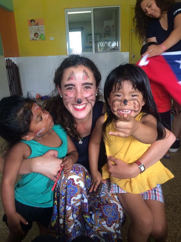 Bajo la sombra de tamarindos, mangos y guayabas, un grupo de 35 colegialas y universitarias se contagiaron con la alegría de los niños hospedados en ese lugar. Les llevaron colaciones y organizaron juegos los días 18, 19 y 20 de enero. Para Magdalena Arraztoa, quien cursa primer año de Administración de Servicios en la Universidad de Los Andes, estas actividades “nos ayudaron a olvidarnos de nosotras mismas, y así trabajar interiormente una mejor disposición ante el mensaje del Papa”.