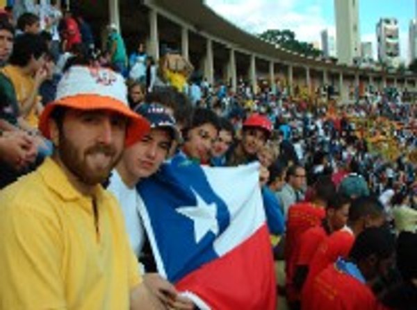Más de cien estudiantes chilenos de colegio y de universidad llegamos un martes a Sao Paulo, donde nos esperaban cinco días de intensas actividades y de "luchas feroces" por conseguir el mejor puesto para ver lo más cerca posible al Papa. Al día siguiente, por ejemplo, estuvimos más de tres horas esperando fuera del Monasterio de San Bento para escuchar el primer saludo del Romano Pontífice y poder –para muchos era la primera vez– verlo directamente.