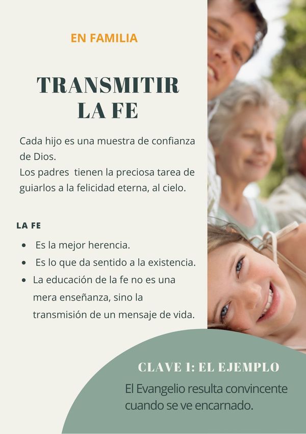 Un hijo es un regalo de Dios. Y también una muestra de confianza en los padres, pues la fe es el mayor don que se puede transmitir a sus hijos. Es sin duda lo único importante, ya que es lo que da sentido último a la existencia del ser humano. En la preciosa tarea de guiar a los hijos a la felicidad eterna, al cielo, la fe viva de sus padres es clave. Porque la educación de la fe no es una mera enseñanza, sino la transmisión de un mensaje de vida.