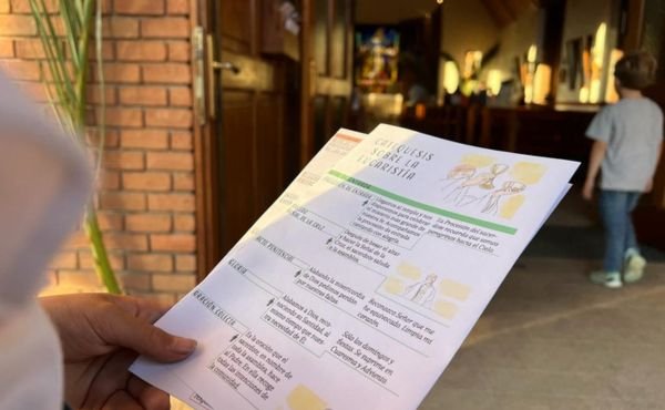 En paralelo, durante 12 domingos el párroco fue haciendo pequeñas catequesis sobre las distintas partes de la misa y el último día se entregó el díptico que ya estaba terminado. El padre Francisco cuenta que ahora quiere poner unos afiches grandes a la entrada de la iglesia con esta información.