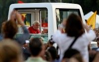 Y al papa Benedicto XVI, que ahora pasa el timón de la barca del pescador de Galilea a su sucesor, le decimos de todo corazón: ¡Gracias, santo padre, perdón por nuestras faltas de correspondencia a sus silbidos de buen pastor, y le rogamos que no cese de ayudar a todo el pueblo de Dios con la fecundidad de su pensamiento y de su oración!