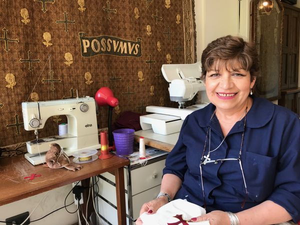 Susana Miranda lleva 45 años en el taller. Por sus manos pasaron la casulla, alba, cíngulo, amito y estola que utilizó San Juan Pablo II en la Misa de Rodelillo, Valparaíso, el 2 de abril de 1987. Por su parte, María Eugenia Muñoz lleva 19 años en el taller y cuenta que aprendió el oficio de manera autodidacta. “Fue una sorpresa que nos tocara colaborar con un grano de arena. Uno se interesa por saber más del Papa y mi marido me pregunta asombrado cómo voy con los avances”, resume.