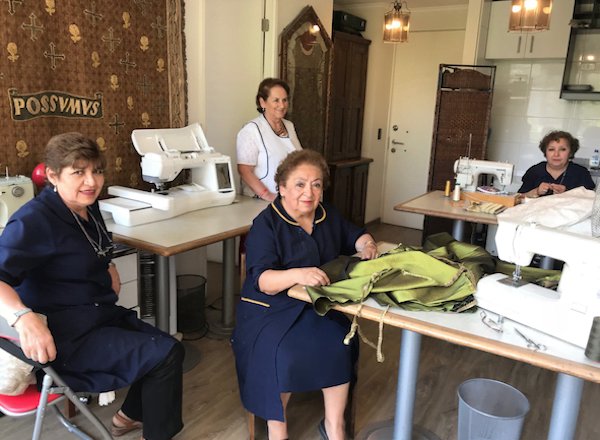 En nuestro reporteo encontramos a 11 mujeres que llevan seis meses reuniéndose hasta tres veces por semana para cortar, hilvanar, coser y deshilar amitos, corporales y purificadores bajo la tutela de Elizabeth Volpi. Para ellas, el arte de deshilar o sacar una hebra del corte textil para darle una terminación más acabada, era lo más difícil: le preguntamos a Alejandra Palma, apasionada bordadora, si sintió cierta monotonía. “¡La verdad es que la monotonía no la sientes por la importancia que tiene! El trabajo más aburrido y más difícil era el deshilado, pero hacerlo con el sentido en que lo estábamos haciendo, para la venida del Papa, lo transformaba en algo totalmente alegre y novedoso. Había además un ambiente maravilloso de trabajo y amistad”, recalca.