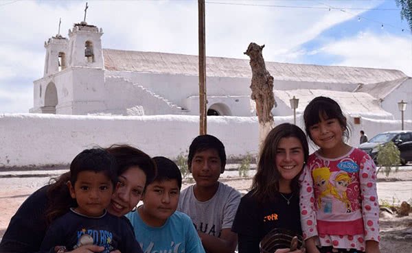 Las estudiantes que reciben formación en la Residencia Araucaria y en los Centros Aconcagua y Espoz decidieron dirigir sus esfuerzos a prestar ayuda en Chiu- Chiu, pueblo ubicado en el Altiplano en la zona norte de Chile, a 30 kilómetros de Calama. Esta localidad posee una Iglesia dedicada a San Francisco que es un hito por su valor histórico y patrimonial pues, según los archivos parroquiales, se fundó antes de 1611. Cristal Aguayo, alumna de Pedagogía en Historia de la Universidad de los Andes, participó en la limpieza, iluminación y puesta en marcha del sistema de audio de esta Iglesia de más de 400 años de existencia: “Fueron días dedicados a barrer, limpiar, desempolvar, ordenar los ornamentos litúrgicos, rescatar las ropas que adornan los santos, etc. Comparado con otros trabajos, en los que había participado con anterioridad, no percibí una satisfacción inmediata. Estar con jóvenes y niños es más motivador y allí solo veía mucho polvo y un trabajo algo monótono… Sin embargo, me cambió la visión cuando conversé con una señora que se movía con muchísima dificultad para llegar a Misa. Ella se emocionó al ver el resultado de la limpieza y dijo: ´¡Qué pena que ya no tenga fuerzas para cuidar la casa más importante de este pueblo, la Casa del Señor!´. Ahí recapacité y me dije: ¡Hemos estado trabajando directamente para Él, qué gracia más grande! Además, como estudiante de Historia me enriquecí muchísimo con esta experiencia patrimonial única, pero aún más con lo que me hizo reflexionar esa anciana”.