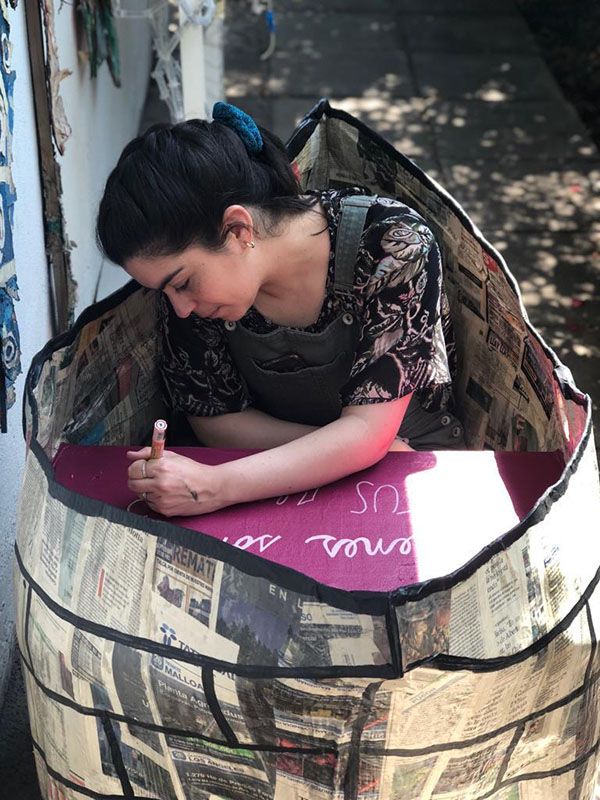 Además, hace tres años, llegué a trabajar a la Fundación Lacaracola. Actualmente estoy trabajando en dos hospitales públicos, donde acompaño a niños en sus tratamientos oncológicos. A través del arte expresan cómo se sienten: jugar es innato en ellos aún en medio del dolor y sufrimiento. El arte les permite ese espacio lúdico.