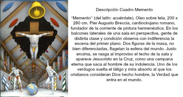 Laudato si’ mi’ Signore. Las primeras palabras de la encíclica del Papa Francisco abren un horizonte espléndido. El conocido canto a la creación, de Francisco de Asís, se dirige a Alguien superior para quien no somos lejanos. Él espera una respuesta, un compromiso, un agradecimiento, por tantos dones, entre ellos el mundo que habitamos. Este mundo puede seguir siendo bueno, como salió de sus manos (Gen 1, 31). Hace pocos días contemplé un cuadro titulado Memento (del latín: acuérdate), de un prestigioso cardiocirujano romano que se dedica ahora a la pintura, Pier Augusto Breccia. La imagen impresiona por su fuerza. Las explicaciones del autor le dieron vida. Con su autorización, lo utilizo para unas breves pinceladas sobre la encíclica. La tela, de dos metros de altura, presenta una sala en perspectiva. En los balcones laterales, gente de distinta clase y condición observa con indiferencia la escena del primer plano. Dos figuras no bien diferenciadas flagelan la esfera del mundo. Justo encima, se rasga al improviso el techo de la sala y aparece Jesucristo en la Cruz. Uno de los verdugos suelta el látigo y mira absorto a Dios hecho hombre.