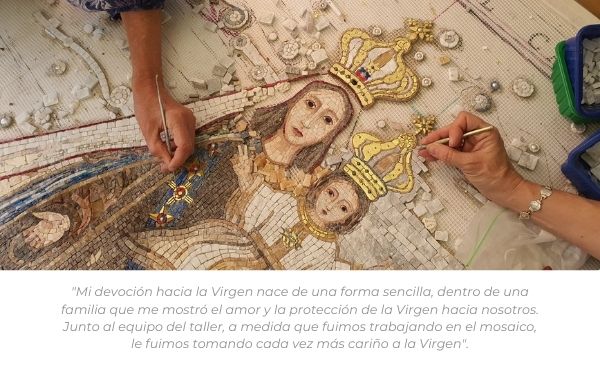 A medida que trabajábamos en el mosaico, junto al equipo del taller Maraná-thá, le fuimos tomando cada vez más cariño a la Virgen.