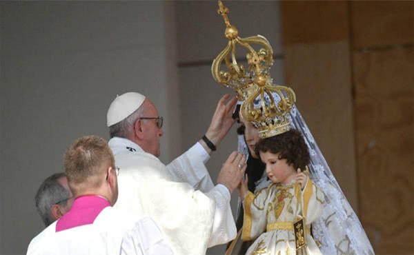 En Iquique pidió: “Como María en Caná, busquemos aprender a estar atentos en nuestras plazas y poblados, y reconocer a aquellos que tienen la vida «aguada»; que han perdido —o les han robado— las razones para celebrar; los tristes de corazón. Y no tengamos miedo de alzar nuestras voces para decir: "no tienen vino”.