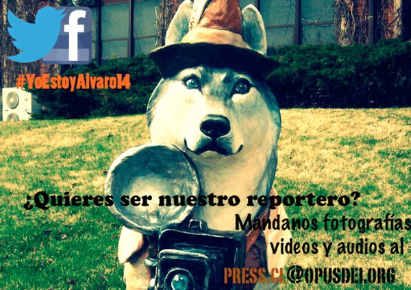 3) Redes sociales: En twitter y facebook viralizar nuestros contenidos, y retuitear nuestros twits en @OpusDeiChile. El mismo día, marcar con hashtag: #YoEstoy Alvaro14